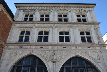 La porte François Ier de la citadelle existait avant cette dernière. Porte est de la ville, elle est décorée de salamandres, emblèmes de François Ier, honoré avec les lettres F accompagnées de couronnes. Au centre-ville, il nous reste une seule façade Renaissance. Et quelle façade ! La Maison du Sagittaire, du nom de cet animal fantastique qui l’orne, est l’exemple type de cette architecture qui renvoie à la thématique grecque avec les têtes de l’Antiquité ainsi que la superposition des trois ordres (dorique, ionique et corinthien).