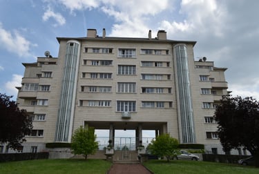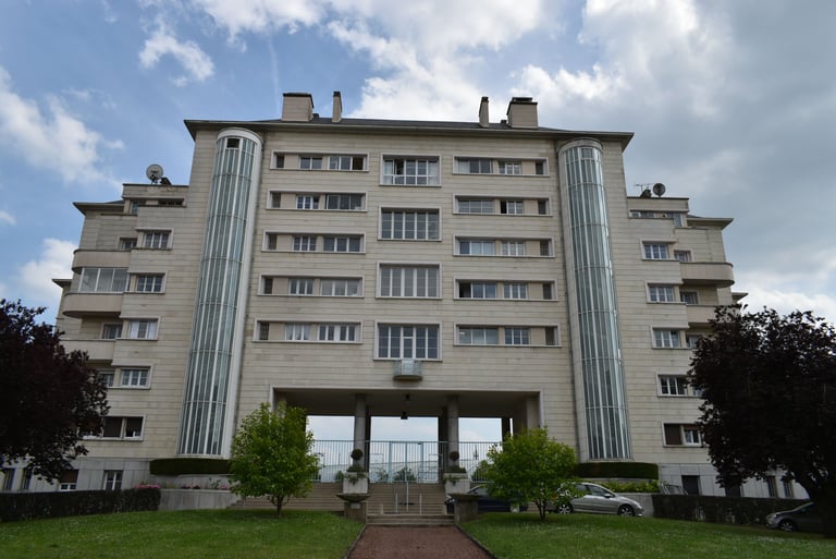 Le béton est forcément le matériau roi de ce style qui s’impose au lendemain de la Seconde Guerre mondiale. Plusieurs immeubles furent construits : les ISAI (Immeubles Sans Affectation Immédiate (ou Individuelle), entrée rue Jean Catelas, et le Château-Milan en sont les exemples les plus parfaits. La Reconstruction se lit également à travers les sculptures, notamment de Léon Lamotte, qui habitent les murs d’Amiens, en lien avec la famille, les saisons ainsi que les anciens métiers d’Amiens.