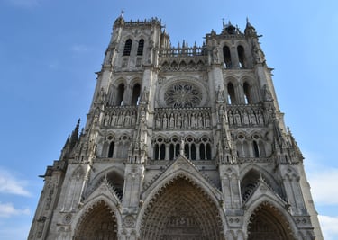 Le Moyen-Âge Amiénois, c’est la Commune, événement durant lequel les bourgeois de la ville créèrent l’échevinage, ancêtre de notre conseil municipal. Le beffroi était leur symbole qui était également une prison. La cathédrale est LE monument phare médiéval d’Amiens, construite en partie grâce à la waide, plante tinctoriale qui donna le célèbre bleu teinturier d’Amiens, avec pour conséquence l’enrichissement de la ville. En 1385, Charles VI, roi de France, et Isabeau de Bavière se marièrent en la cathédrale d’Amiens.