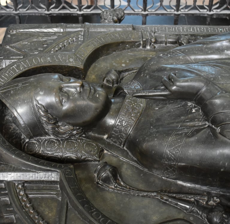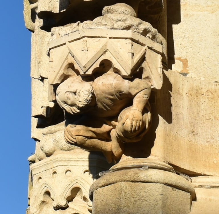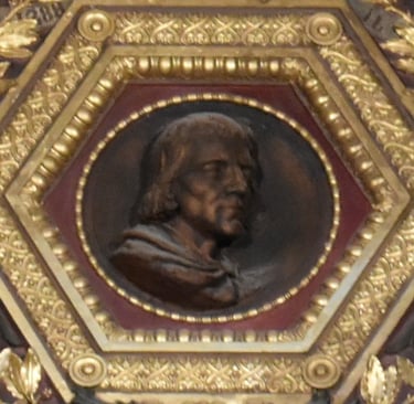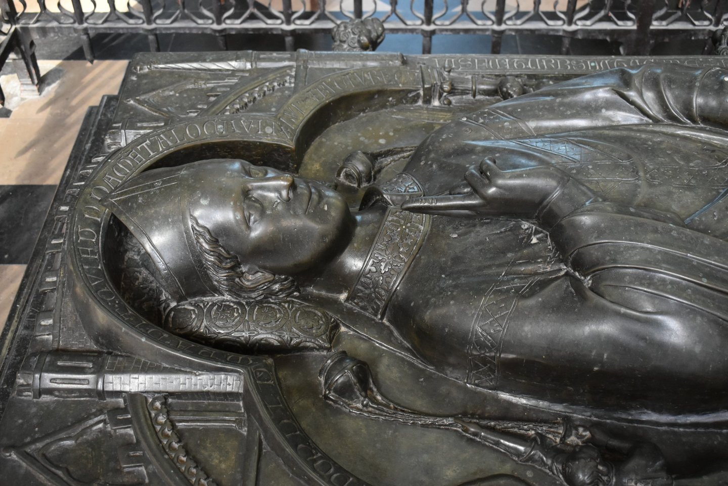 Membre de Conseil du roi Charles V, Jean de La Grange devint évêque d’Amiens en 1373. Proche du pape Grégoire XI dont il était le conseiller, il resta très attaché à Amiens et à sa cathédrale : en témoigne le Beau Pilier, contrefort soutenant la tour Nord pour éviter qu’elle ne s’effondre. Plus qu’un élément structurant, c’est un véritable manifeste politique pour le roi de France Charles V qui y apparaît accompagné de ses deux fils dont le futur Charles VI sans oublier l’évêque qui se fit représenter sur ce Beau Pilier avec son chapeau de cardinal.