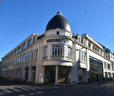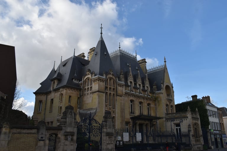 Petit-fils d’Aimé Duthoit, Louis fut un architecte dont les édifices les plus grandioses sont encore visibles : la basilique Notre-Dame de Brebières d’Albert avec son père Edmond (en médaillon) puis qu’il a reconstruite après la Grande Guerre, l’hôtel Bouctot-Vagniez, actuelle rue des Otages, où le néogothique se mêle à l’Art nouveau, le plan d’Amiens après le premier conflit mondial ou encore l’École des Beaux-Arts de style Art déco, actuelle Conservatoire. Un architecte aux multiples styles.