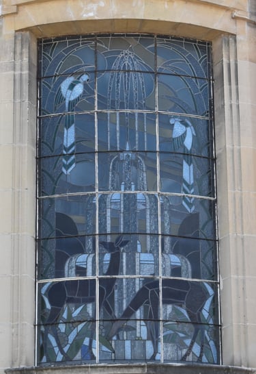 L’art déco est perceptible fréquemment avec de belles réalisations comme la maison au corps central arrondi avec un vitrail d’une rare qualité, rue Edmond Lebel (ci-dessus).