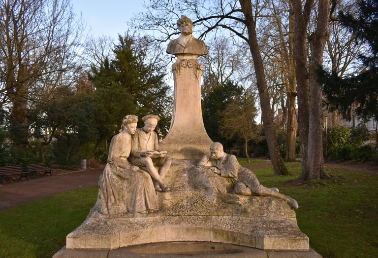 Il y a un homme de lettre qui a une place de choix à Amiens : Charles du Fresne du Cange. Installé dans le square Saint-Denis, il veille sur les promeneurs avec son habit du XVIIe siècle. Né en 1610 à Amiens, il fut élève au collège des jésuites et excella dans la recherche tout au long de sa vie. Trésorier de France de la généralité d’Amiens, l’Antiquité et le Moyen-Âge furent ses domaines de prédilection. Linguiste philologue, il écrivit plusieurs volumes d’histoires qui firent date.