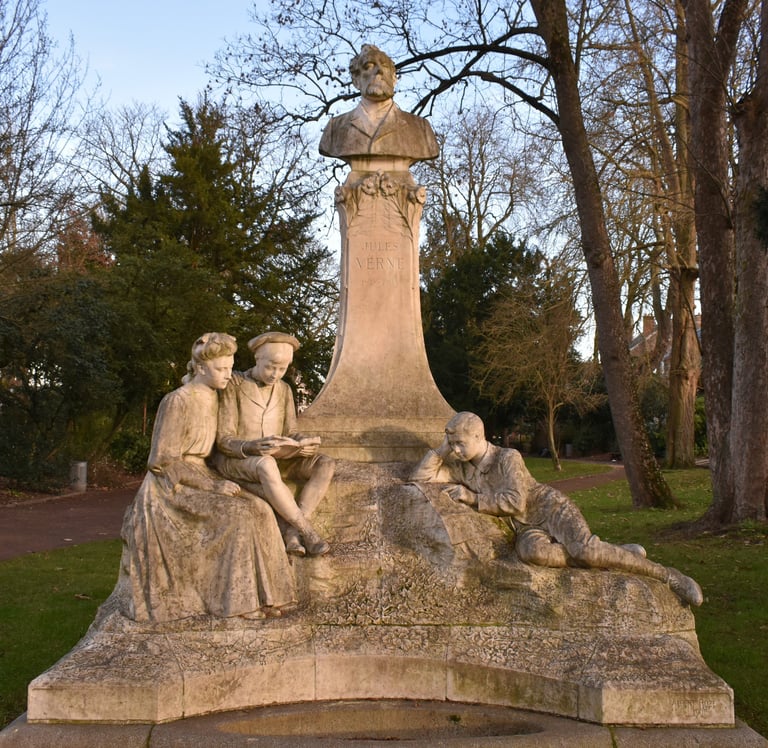 Comment présenter celui qui est l’un des écrivains les plus connus dans le monde ? Son nom résonne dans la popularité de ses romans d’aventure et de sa capacité visionnaire. Né à Nantes en 1828, Jules Verne vint à Amiens en 1856 pour être le témoin de son ami Auguste Lelarge : tombant amoureux de la sœur de la mariée, Honorine de Viane, il l’épousa puis s’installa définitivement à Amiens en 1871. La maison à la tour, rue Charles Dubois, est sa demeure la plus célèbre, transformée depuis en musée. Il y écrivit nombre de ses romans, ainsi qu’au Crotoy où il avait une maison. Jules Verne s’intéressa à la vie locale Amiénoise, organisa des bals costumés autour des thématiques de ses romans et devint conseiller municipal d’Amiens à partir de 1888 jusqu’en 1904. Un an plus tard, sa mort attrista des milliers d’Amiénois qui défilèrent, nombreux, pour lui dire un ultime au revoir. Deux monuments lui rendent hommage : au cimetière de la Madeleine et au square qui porte son nom, à quelques mètres de la maison à la tour.